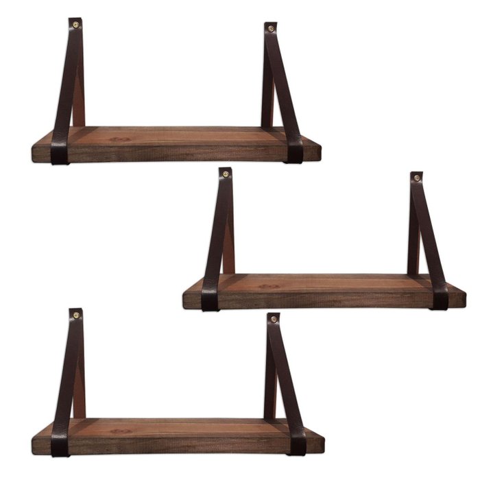 Kit com 3 lindas prateleiras Rustica em pinus e alças de couro sintético de alta qualidade