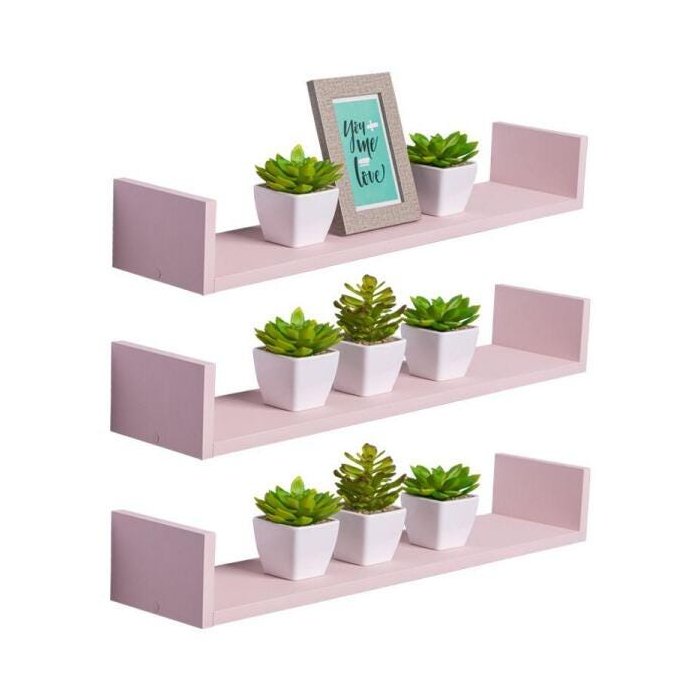Kit 3 Prateleiras U 60 x 20cm Rosa Claro Suporte Invisível