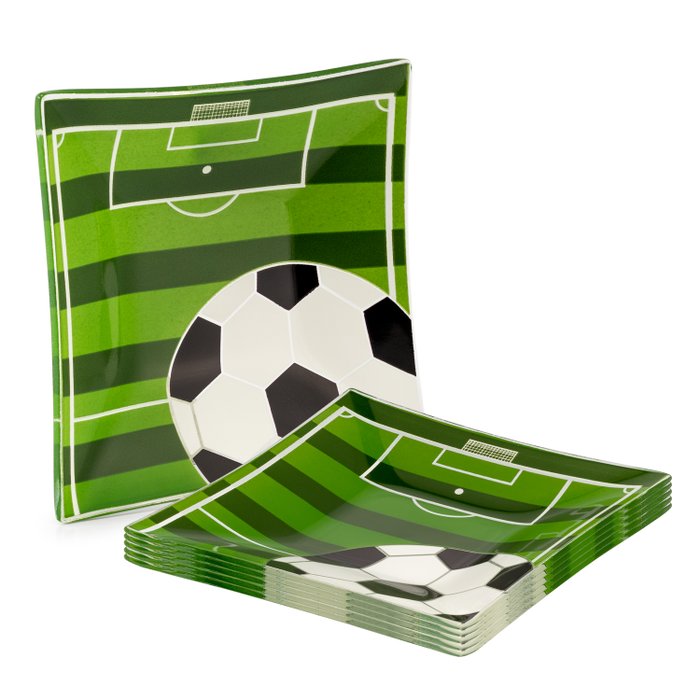 Prepare sua casa para receber os amigos com este pratinho quadrado de vidro decorado com campo de futebol.