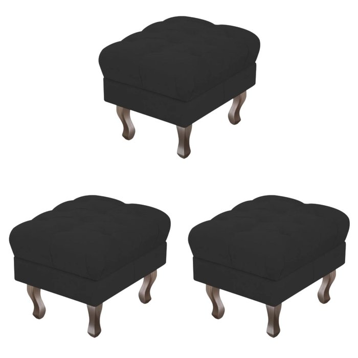 Kit 3 Puff Retro Decoração para Sala de Estar Recepção Suede Preto - Innovazione Móveis