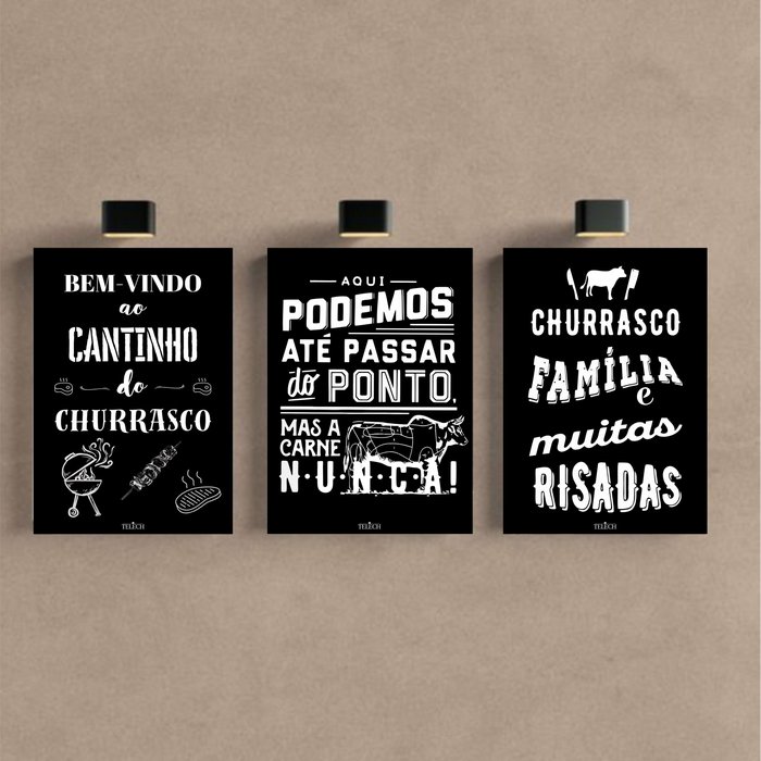 Kit 3 Quadro Decorativo Churrasco Área de Churrasqueira 28x20cm