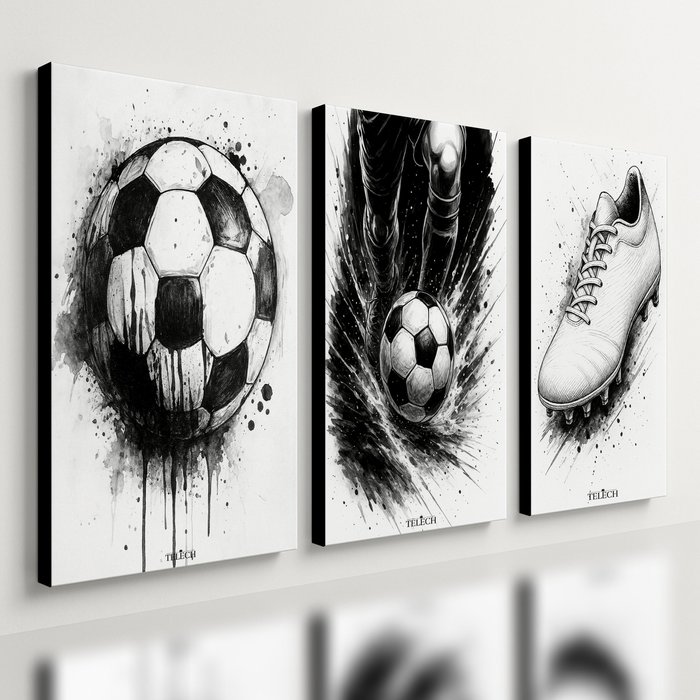 Kit 3 Quadro Decorativo Futebol Jogador Menino Bola Quarto Qualidade Premium Luxo 40x28cm
