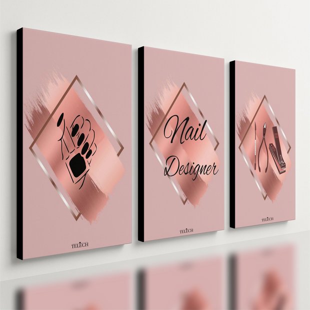 Kit 3 Quadro Decorativo Nair Designer Manicure Unhas Salão 28x20 colorido