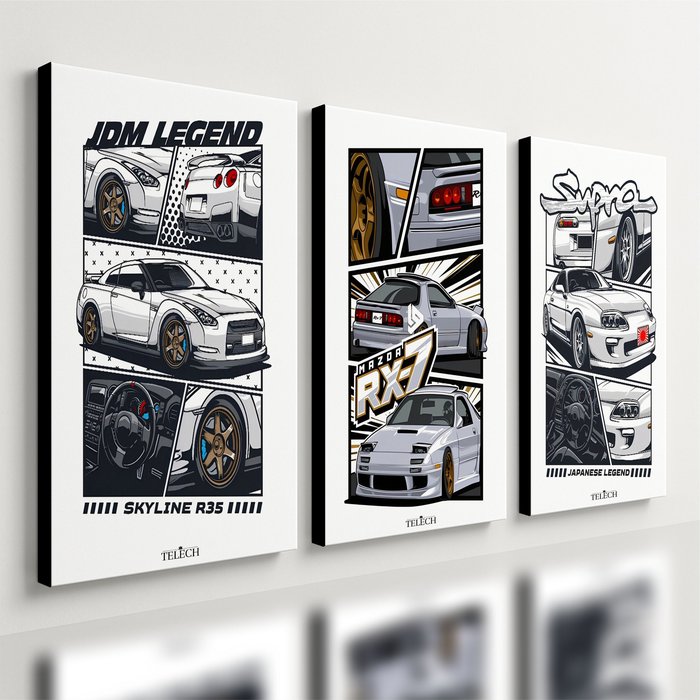 Kit 3 Quadro Jdm Carro Placa Decorativa Japão Supra Skyline 40x28cm