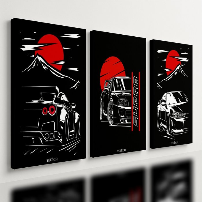 Kit 3 Quadro Jdm Kuruma Carro Supra Skyline Honda Mdf 28x20cm