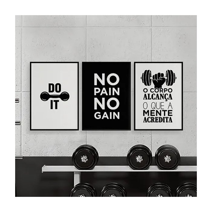 Kit 3 Quadros Academia Do It 33x24cm - com vidro:Madeira branca