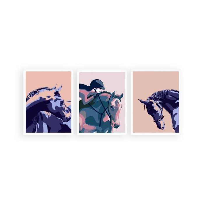 Kit 3 Quadros Cavalos Amazona 24x18cm:Madeira branca Madeira branca