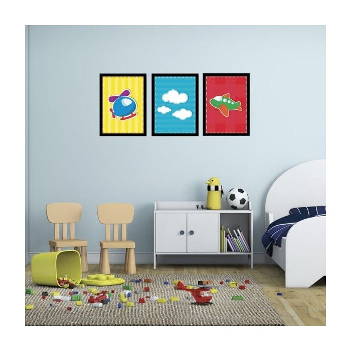 Kit 3 Quadros com Moldura Infantil Céu -