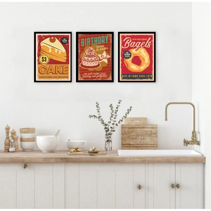 Kit 3 Quadros Cozinha - Doces 33x24cm:moldura Preta