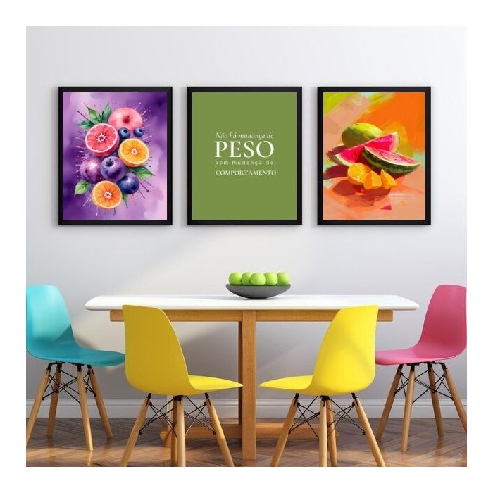 Kit 3 Quadros Cozinha - Mudança de Hábito 24x18cm:moldura Preta