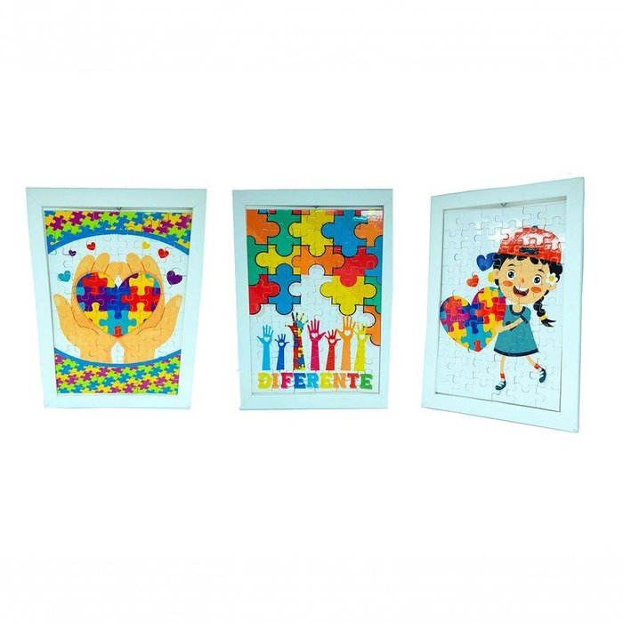Kit 3 quadros decorativos Autismo para consultórios e Pediatria Em um mundo que celebra a diversidade e a inclusão, a sensibilidade e o respeito às necessidades individuais são essenciais, especialmente em ambientes de cuidados pediátricos. É por isso que estamos entusiasmados em apresentar nosso Kit 3 quadros decorativos Autismo para consultórios e Pediatria. Feitos com Quebra-cabeças, esses quadros cativantes são uma maneira de demonstrar apoio a crianças com autismo e suas famílias. Nossos Quadros são uma maneira visualmente impactante de mostrar seu compromisso com a inclusão e compreensão das necessidades de todas as crianças autistas. Cada quadro é feito com muito carinho através do processo de sublimação, e além de seu profundo significado, os quadros adicionam um toque encantador á decoração de seu consultório pediátrico. Junte-se a nós na celebração da diversidade e na criação de um ambiente de cuidado que valoriza a singularidade de cada criança. Faça parte dessa jornada em prol da inclusão e do apoio ás crianças portadoras de autismo. Caracteristicas do Produto : Medidas : 29 X 22 cm cada Qtde de Quadros : 3