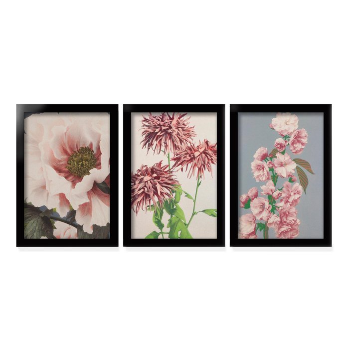 Kit 3 Quadros Decorativos C/ Moldura Flores Rosas Aquarela