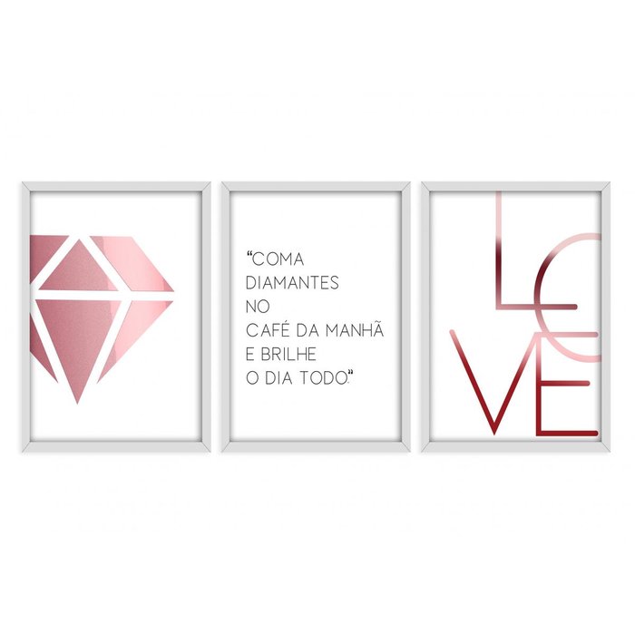 Dimensão do produto Montado 43x105Características: Quadro Com Moldura laqueada lisa 2cm Esse KIT contém 3 unidades cada uma delas com 33x43 cm (cada)Acompanha pendurador - sem necessidade de cola.