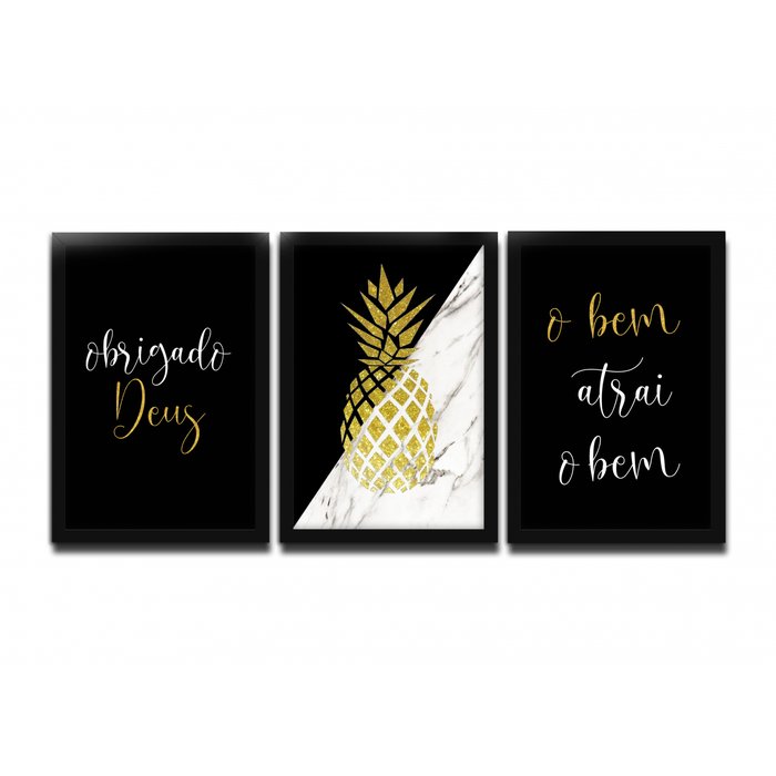 Dimensão do produto Montado 43x105Características:Quadro Com Moldura laqueada lisa 2cm Esse KIT contém 3 unidades cada uma delas com 33x43 cm (cada)Acompanha pendurador - sem necessidade de cola.