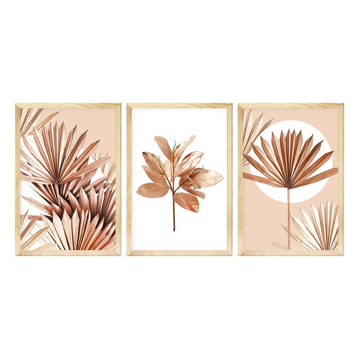 Kit 3 Quadros Decorativos Cozinha 33x43cm Moldura em Pinus com Plantas Folhagem Rose - Hugart