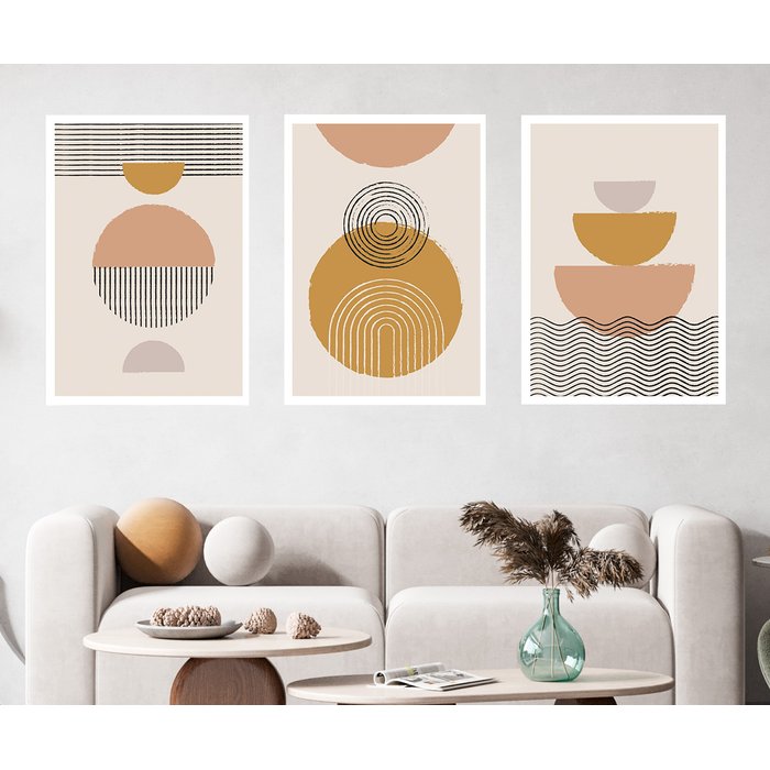 Kit 3 Quadros Decorativos Figuras Geométricas Para Quarto