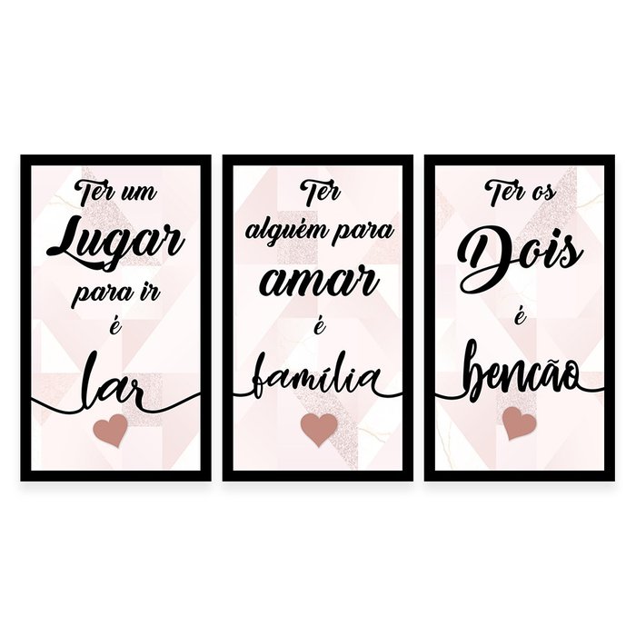 Kit 3 Quadros Decorativos Grandes Ter um Lugar pra ir é Lar Rose Quero Mais Quadros KC3GE-021