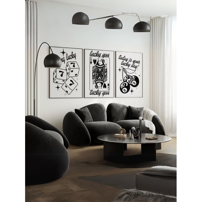 Kit 3 Quadros Decorativos Lucky You 777 Preto Moderno - Moldura Preta Preto