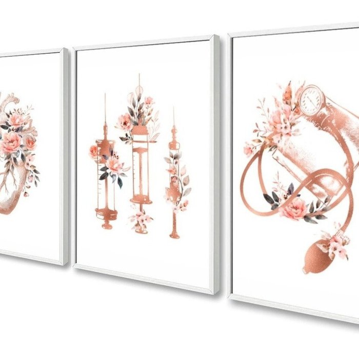 Kit 3 Quadros Decorativos Medicina Coração para Consultório 60x40 Vinil