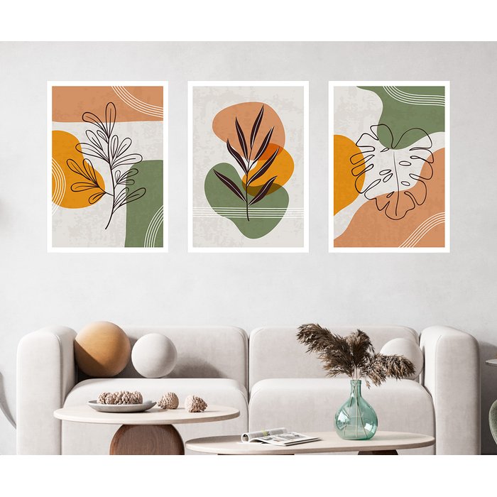 Kit 3 Quadros Decorativos Minimalista Folhagem Botânico