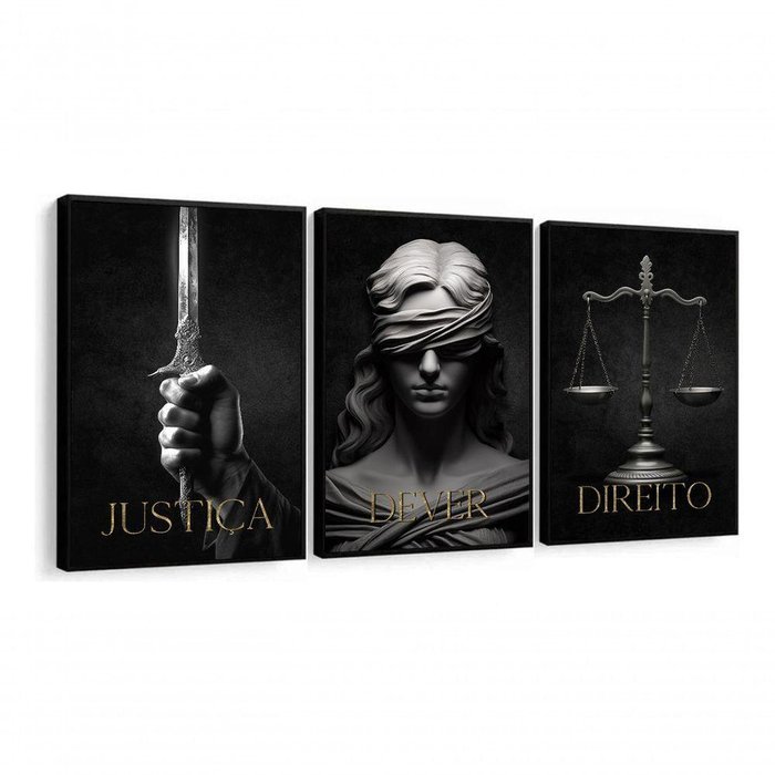 Kit 3 Quadros Decorativos P/ Advocacia Direito C/ Frase
