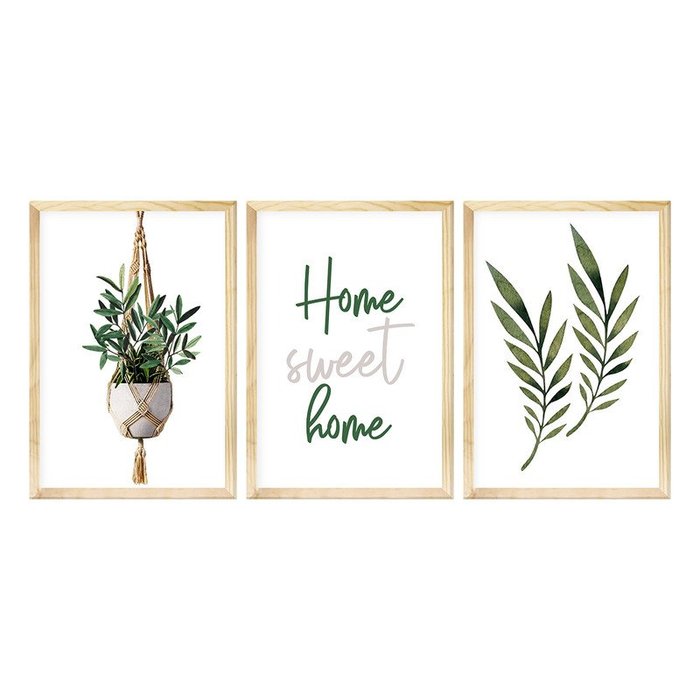 Kit 3 Quadros Decorativos para Corredor Moldura Pinus Plantas Folhas -