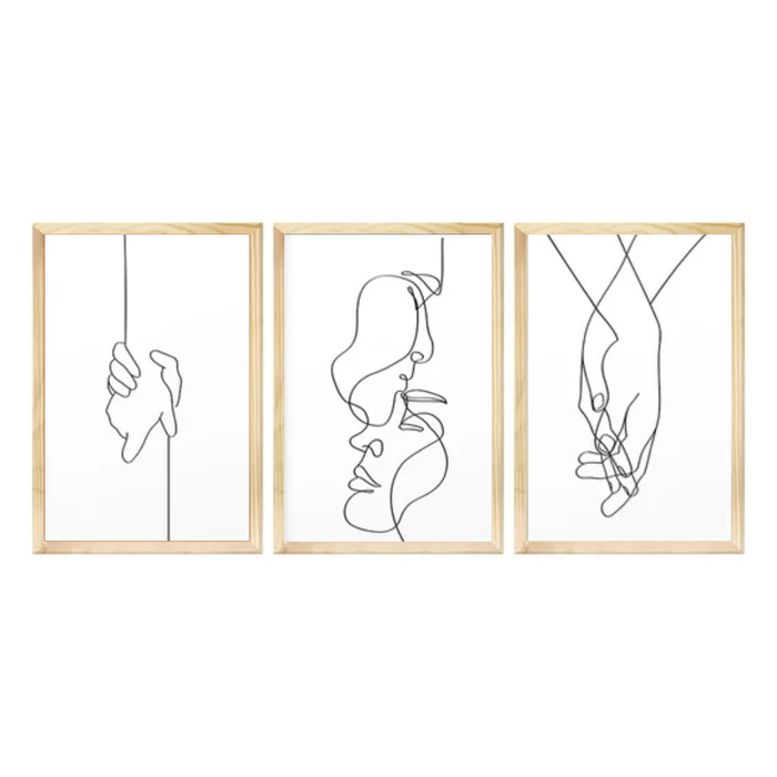 Kit 3 Quadros Decorativos Quarto Casal Minimalista Amor Moldura Pinus