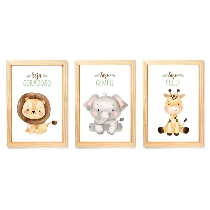 Com os nossos quadros o seu ambiente ganha cor e vida. Escolha o modelo que falta para deixar a sua decoração ainda mais bonita.O quartinho dos nossos pequenos merecem aquele detalhe especial, e nós da Creative Cat temos exatamente o que você procura.Trabalhamos também com quadros para os demais ambientes da sua casa.Kit composto por 3 quadrinhosCARACTERÍSTICAS:3 QuadrinhosTamanho do quadrinho 23 X 33cm (Imagem 20x30cm)Moldura de madeira ecológica com ótimo acabamento 100% livre de imperfeiçõesCores Disponíveis ( Branca, Preta, Pinus e Tabaco)Acompanha vidro, pendurador e fundo em MDFArte impressa em alta resoluçãoGARANTIA:Acabamento com fechamento e corte com maquinário profissionalEmbalagem adequada para que você receba seu produto em perfeito estado, garantia 100%Garantia de satisfação com o produto ou seu dinheiro de volta.Segurança na compra, Vendedor com ótimas qualificações no Mercado Livre.Observações:- É possível existir diferença entre as tonalidades das cores (mais claro ou mais escuro) das artes validadas e a impressão final, devido a diferença entre marcas e modelos de monitores.