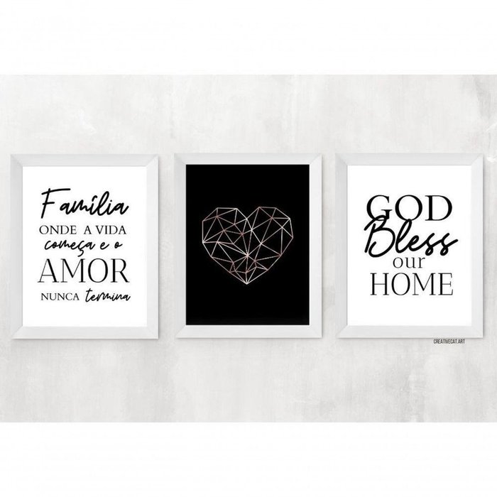 Kit 3 Quadros Para Casa - Família Abençoada Kit composto por 3 quadrinhos CARACTERÍSTICAS: