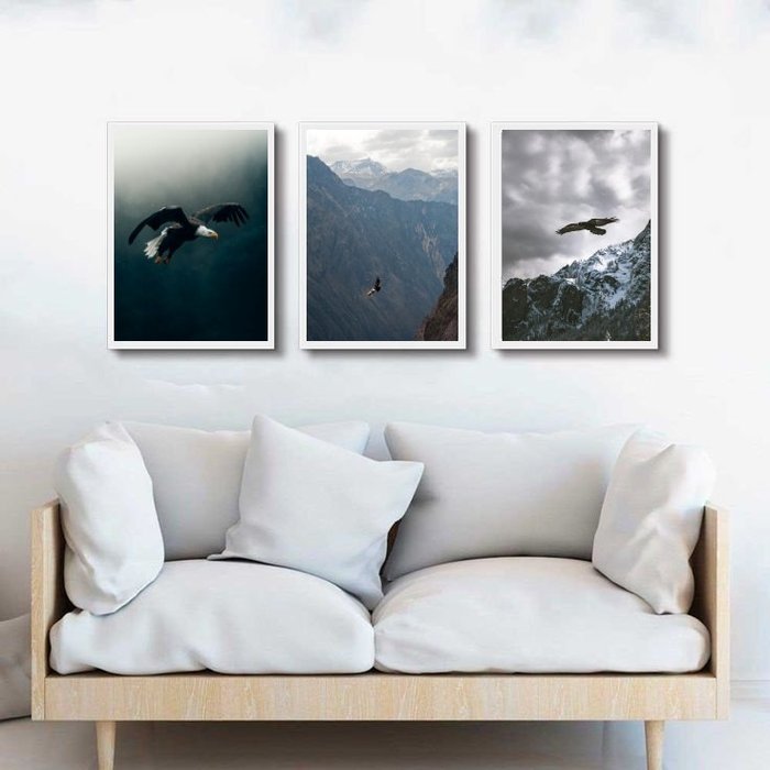 Kit 3 Quadros Fotografias Águias Voando 45x34cm - com Vidro:madeira Preta