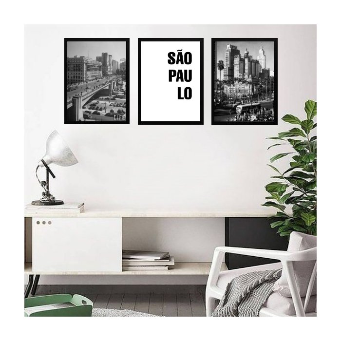 Kit 3 Quadros Fotografias Antigas São Paulo 45x34cm:madeira Branca