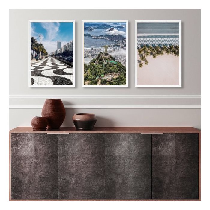 Kit 3 Quadros Fotos Rio de Janeiro- Cristo e Copacabana 24x18cm - com Vidro:madeira Preta