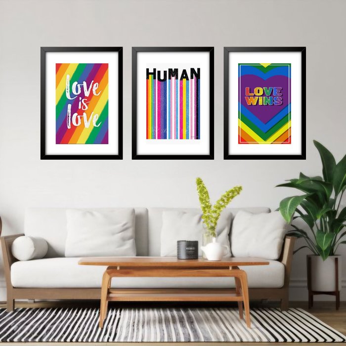 Kit 3 Quadros Grandes Pride 60x48cm:moldura Preta Moldura Preta