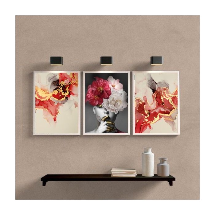 Kit 3 Quadros Modernos Sala Abstrato mulheres 45x34cm:madeira Branca