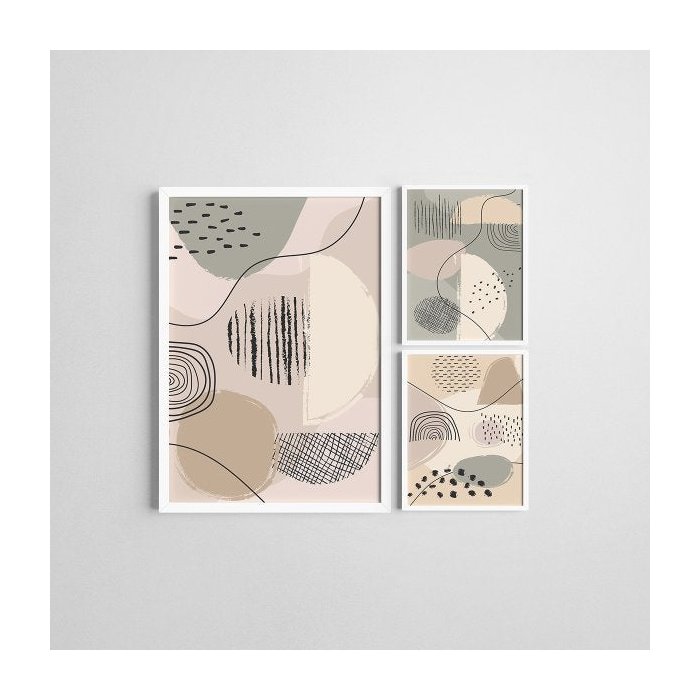Kit 3 Quadros Moldura Branca Abstrato 20x30cm e 40x60cm