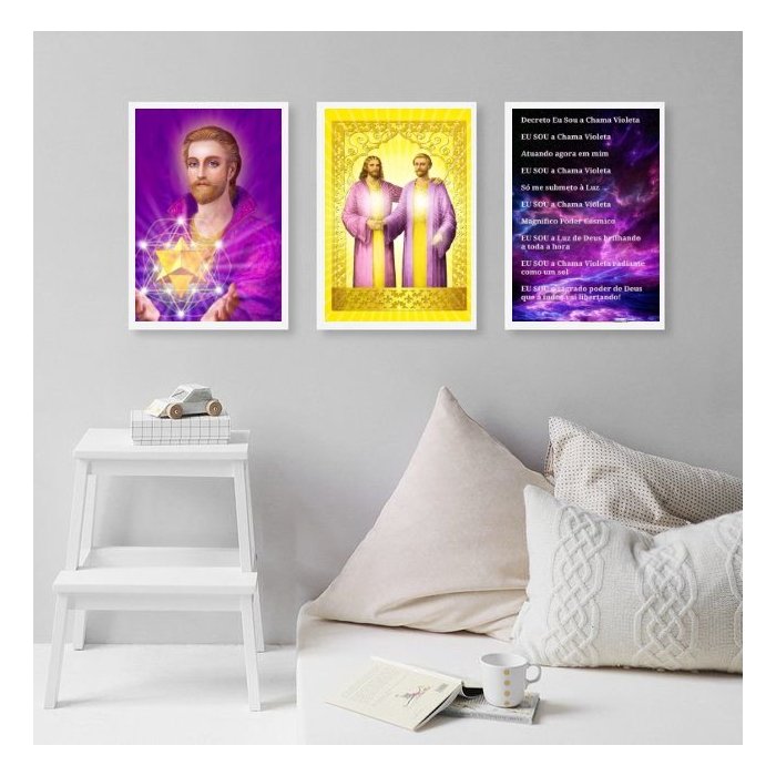 Kit 3 Quadros Saint Germain e Jesus Cristo 45x34cm:madeira Preta