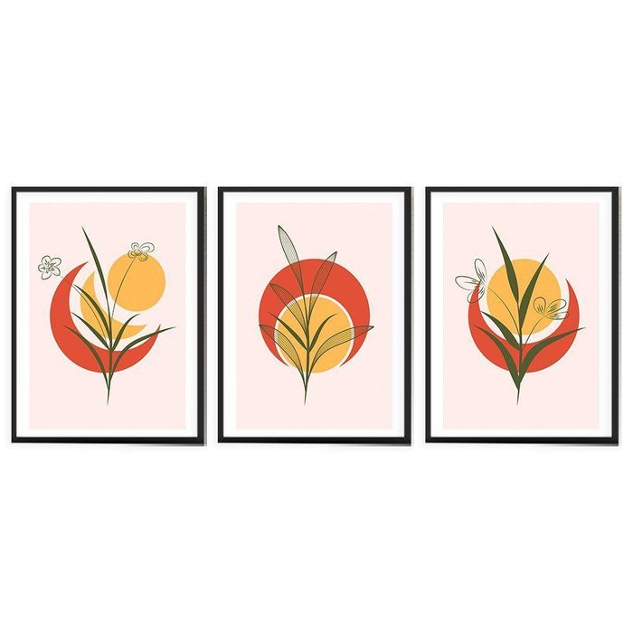 Kit 3 Quadros Sol Lua e Ramos Diversos