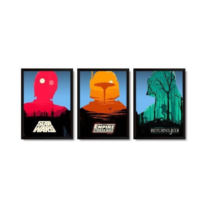 Kit 3 Quadros Star Wars Com Moldura A3 - 32 X 43 Cm