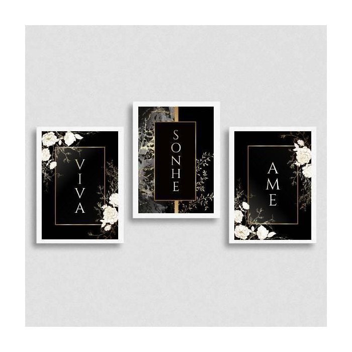 Kit 3 Quadros Viva, Sonhe, Ame – Preto