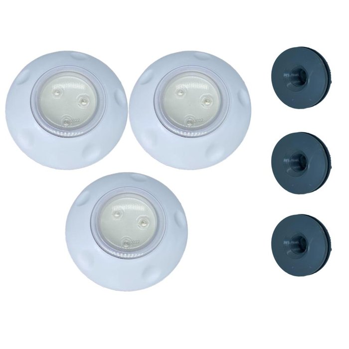 KIT CONTÉM:3 - REFLETOR ILUMINAÇÃO LED PISCINA DE FIBRA 9W RGB DONATTI3 - NICHO ADAPTADOR PARA PISCINA DE FIBRA (25mm)Com uma piscina iluminada, além de um espaço bonito você ainda pode criar um ambiente diferenciado e ampliar a sua diversão.Uma piscina iluminada também é esteticamente mais bonita e moderna, e é uma excelente forma de atualizar a sua decoração. Os efeitos visuais produzidos pelos jogos de luzes valorizam o ambiente e o deixam mais chamativo e atraente.Você ainda pode as cores de acordo com a sua preferência ou com a ocasião, caso realize algum evento em sua área externa..As combinações poderão ser previamente programadas ou ajustadas no momento em que você quiser.- Material : Lente: Policarbonato Transparente/Translúcido- Corpo: ABS- Vedação: Resina Epóx- Cabo: Cabo manga 4 vias com 2 metros de comprimento- Diâmetro: 9.5 cm- Profundidade do Refletor (corpo): 2 cm- Potência: 9W- Área de iluminação (na cor branca): 12m²- Ângulo de Abertura da lente: 150° IP68- Alimentação: 12vcc (RGB)- Consumo: 1A- Encaixe de Pino Pressão e rosca de 1/2REFLETOR ACOMPANHA NICHO PARA INSTALAÇÃO EM PISCINAS DE FIBRA COM CANO DE 25mm.