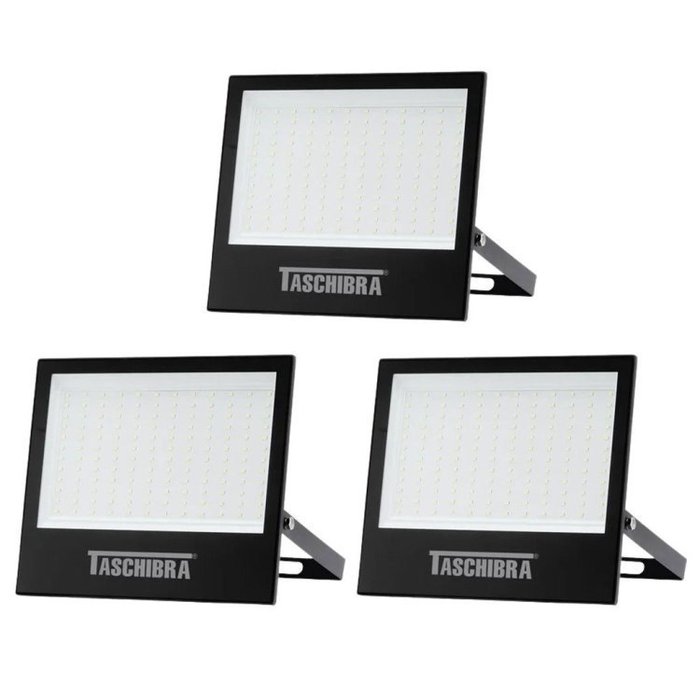 Kit 3 Refletores LED 200W Luz Branca 6500K Taschibra Preto