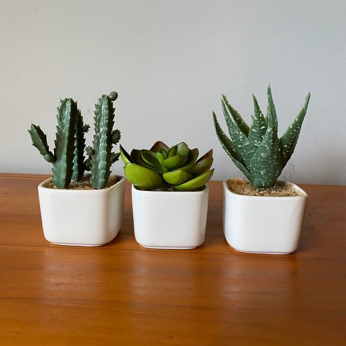 Kit 3 Suculentas Artificiais + Vasos Arranjos Vasinho Branco Branco