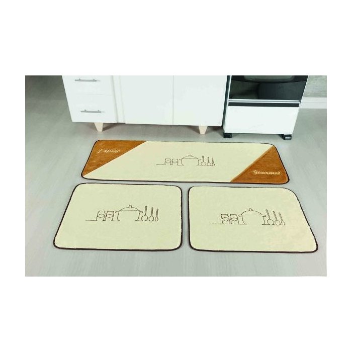 Kit 3 Tapetes Cozinha Passadeira Antiderrapante Pelúcia Gourmet