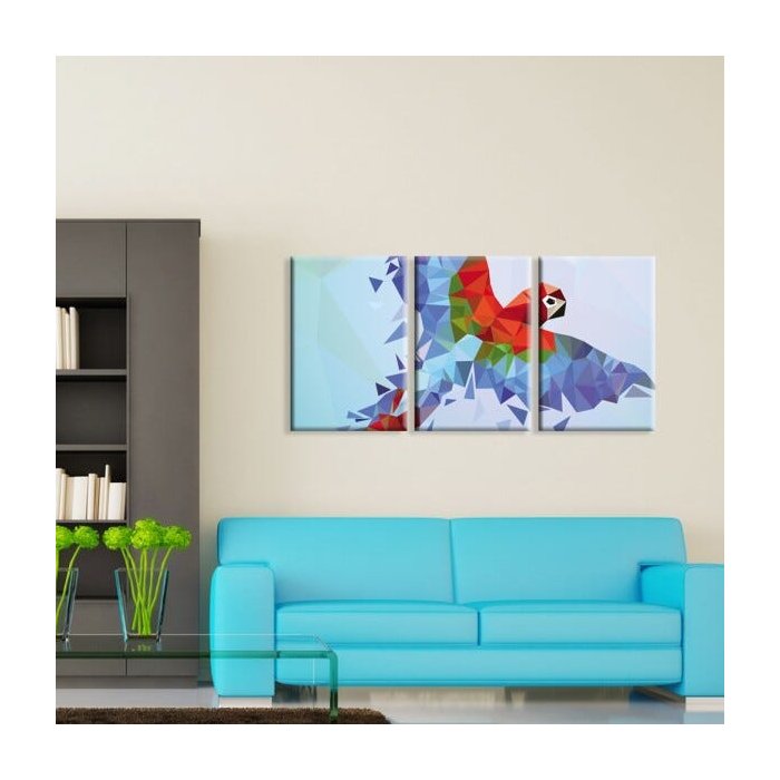 Kit 3 Telas Canvas Arara Abstrato Colorido Geométrico