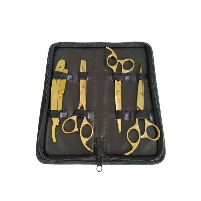 Kit 3 Tesouras Profissionais Navalha Cabeleireiro Barbeiro: Dourado Dourado