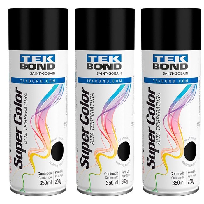 Kit 3 Tinta Spray Preto Fosco Alta Temperatura 350ml Preto