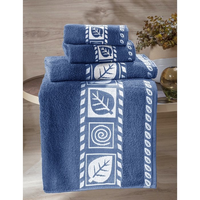 Kit 3 Toalhas de Banho Folha Azul Escuro 100% Algodão 75cm X 140cm Muito Grande