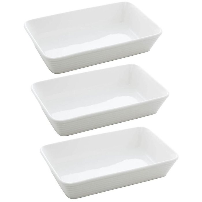 Kit 3 Travessas Porcelana Branca 750ml Refratário Retangular Servir Restaurante Buffet Lyor