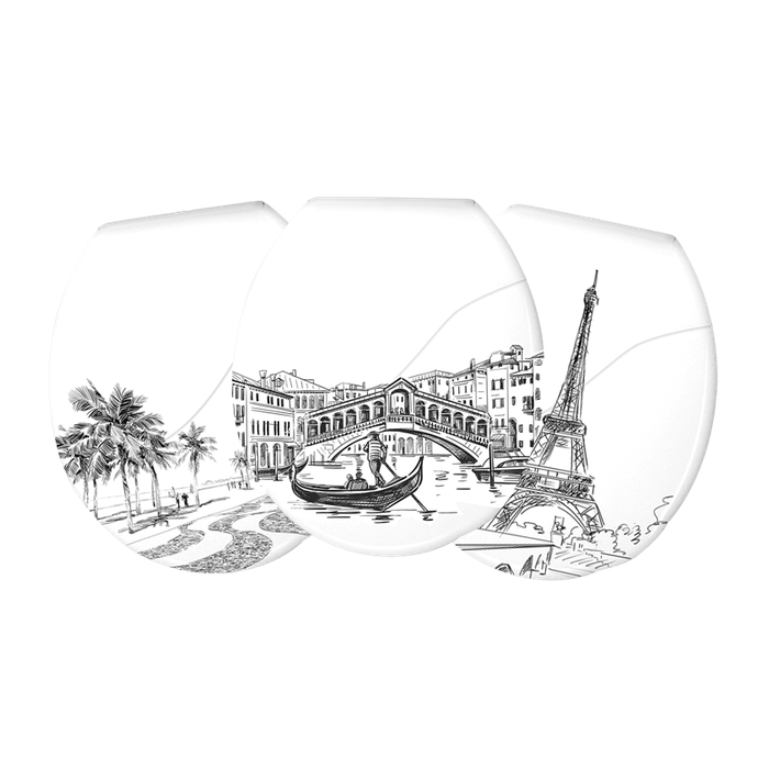 Kit 3 Unidades Assento Tampa Bellart para Vaso Sanitário Oval Almofadado Decorado Paris Copacabana V