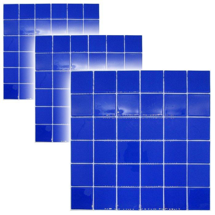 Kit 3 Unidades de Pastilhas em cores azul. Ideal para revestir, decorar Cozinhas, Banheiros, Lavabos, Piscinas, Áreas Sociais e criar detalhes e acabamentos. Coladas em uma tela de nylon em seu verso para fácil aplicação.